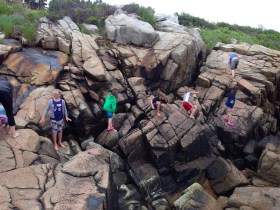 romp up to their ears in sand