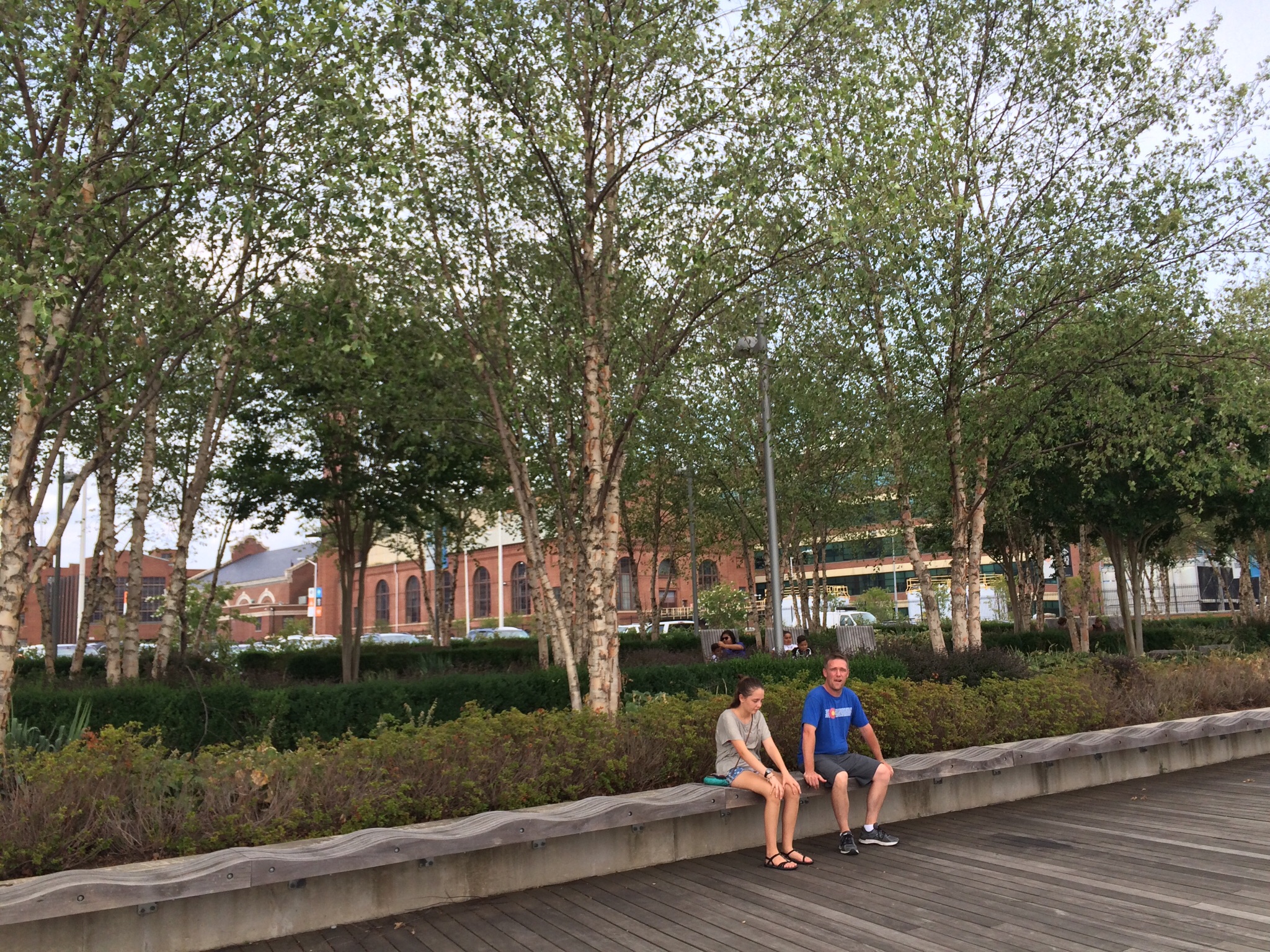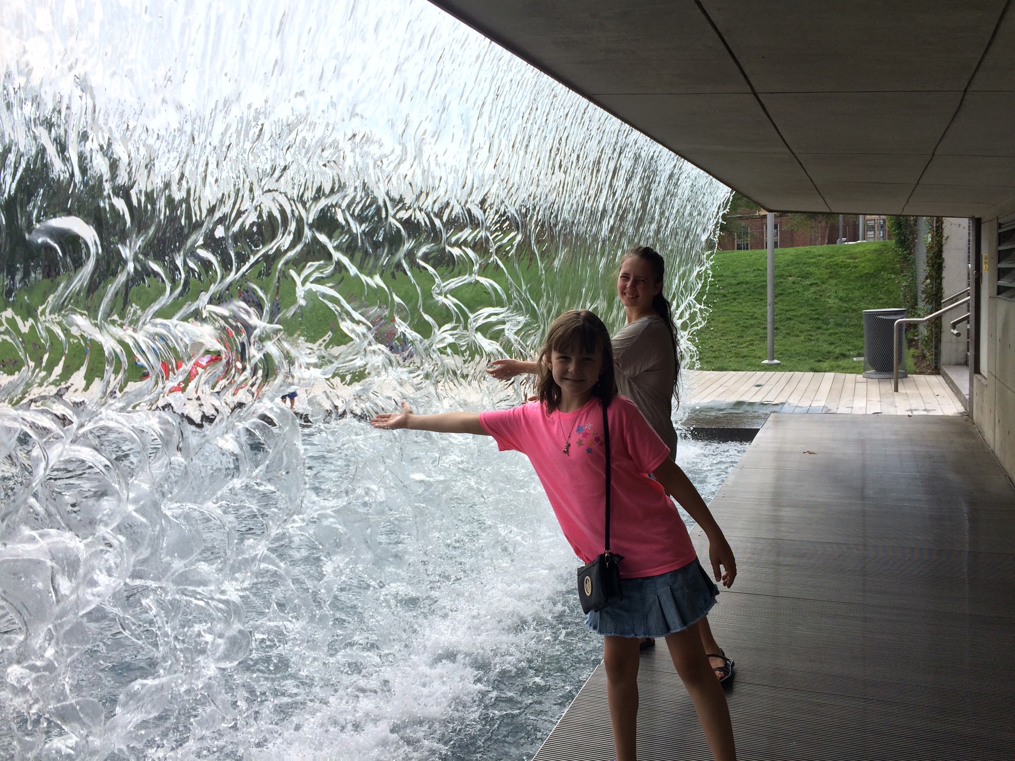a riverfront fountain park,