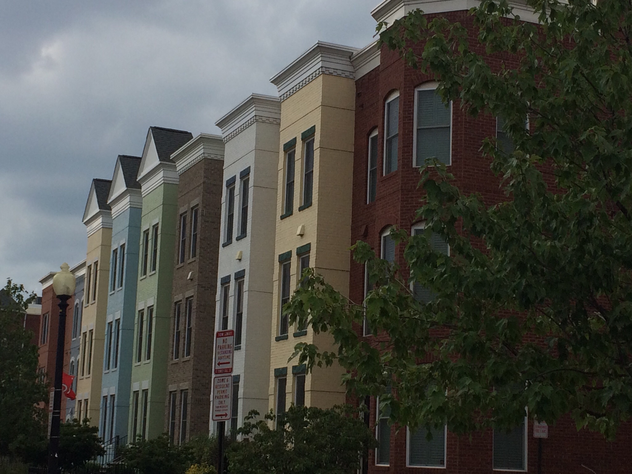 three-storied row homes,