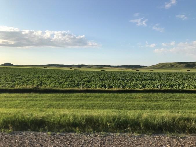 along a siloed, green drive