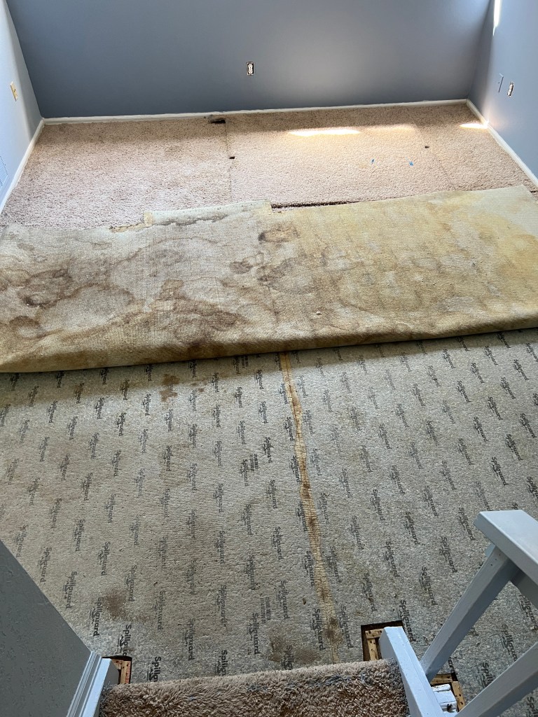 two levels of pet-pee-stained carpet