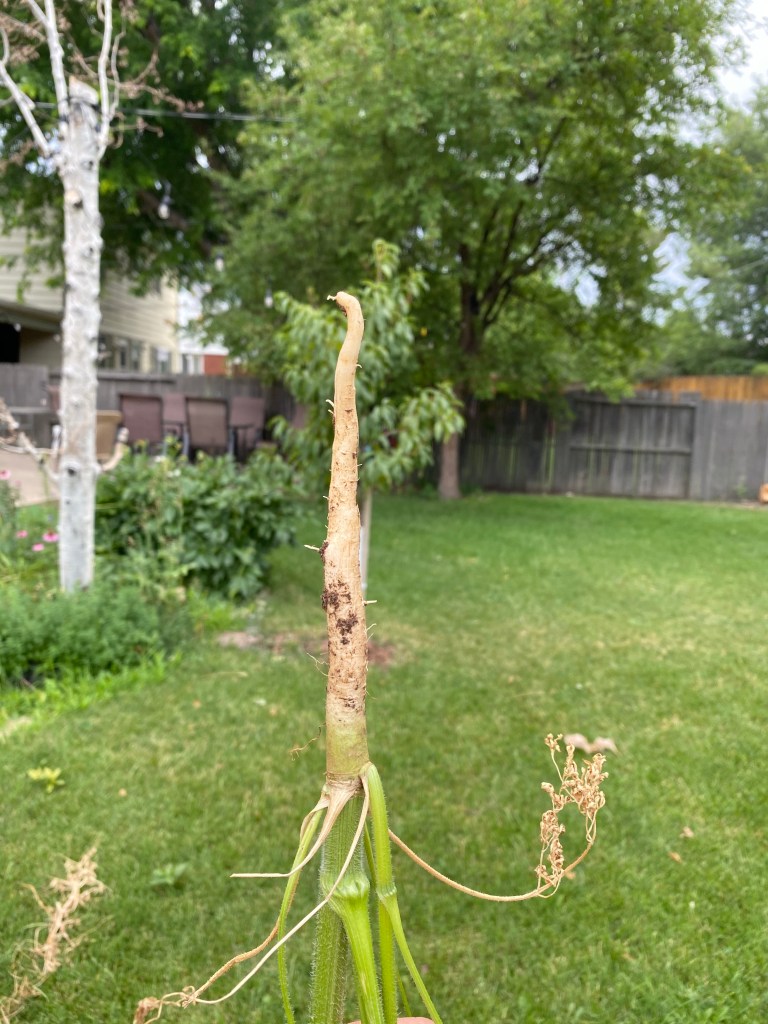 I begin to lay out the soaker hose, a necessity in this dry state, and realize it’s broken in too many places to fully function.